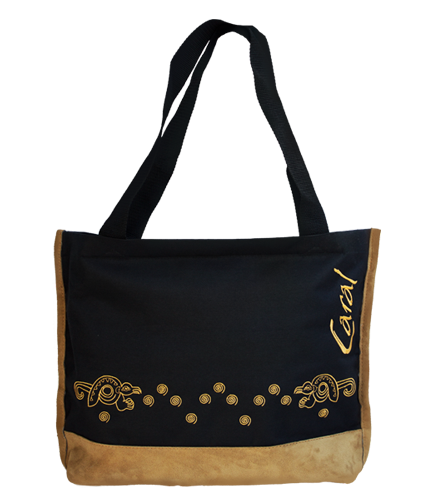 Espacioso bolso para damas, práctico y sobrio para cualquier temporada del año. Disponible en color negro y bordados con las figuras zoomorfas de Caral.