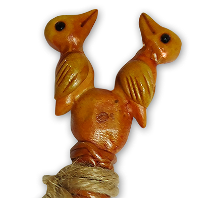 - Detalle: Lleva figuras de aves, halladas en Áspero.