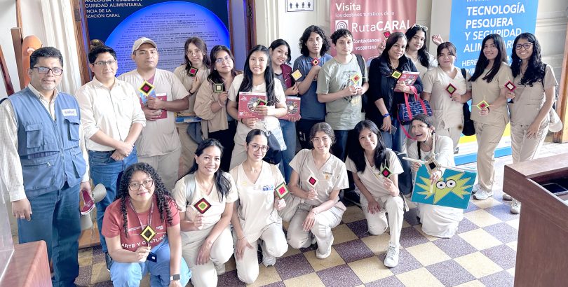 La Zona Arqueológica Caral (ZAC), Unidad Ejecutora 003 del Ministerio de Cultura, recibió la visita de un grupo de estudiantes de la carrera de Nutrición que realizan voluntariado para el portal Salud en Casa. Las estudiantes recorrieron la exposición museográfica “Tecnología Pesquera y Seguridad Alimentaria. Herencia de la Civilización Caral”, que se presenta en el Museo Naval del Perú.