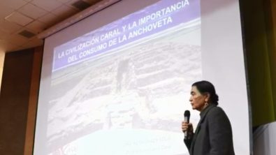 Conocimientos ancestrales en tecnología pesquera. La doctora Ruth Shady Solís, directora de la Zona Arqueológica Caral, Unidad Ejecutora 003 del Ministerio de Cultura, brindó la exposición titulada “La Civilización Caral y la Importancia del Consumo de la Anchoveta”, en el II Foro Nacional: La Técnica Ancestral del Secado de Anchoveta co ...