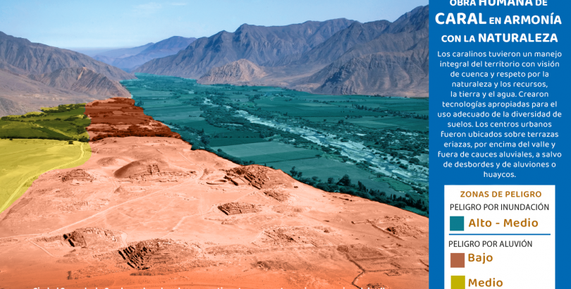 La Civilización Caral (3000–1800 a. C.) constituye uno de los referentes más antiguos de planificación territorial y manejo sostenible del entorno frente a los riesgos naturales. En un territorio expuesto a sismos, inundaciones y fenómenos climáticos recurrentes, las poblaciones caralinas desarrollaron estrategias que evidencian un profundo conocimiento del paisaje y de las dinámicas ambientales.