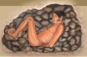 Hallado entre una capa de tierra y piedras, depositada para enterrar el recinto ceremonial, en un período de renovación arquitectónica del Edificio Piramidal Mayor. El cuerpo estaba desnudo, con los brazos extendidos y cruzados en la espalda y no llevaba ninguna ofrenda.